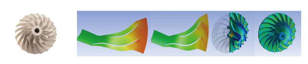 ● 三元流、後彎型設計,五軸加工機精密加工,多變效率達到92%以上。