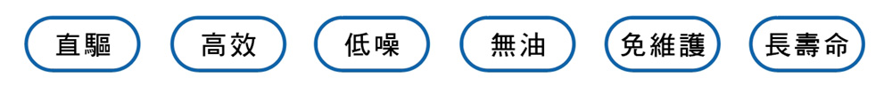 ● 空氣懸浮軸承,無接觸,無油,免維護。