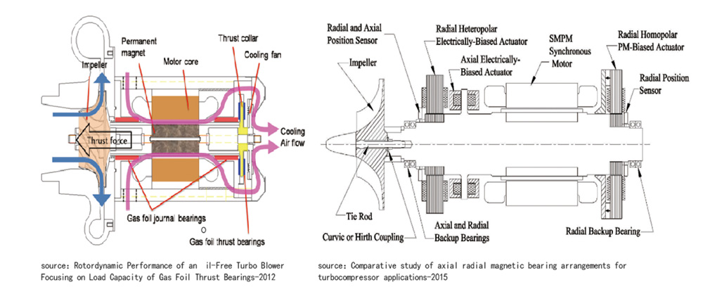 ● 全動壓空氣懸浮,無需外部氣源,依靠轉子高速旋轉,在轉軸與軸承箔片之間形成壓縮氣膜支撐,