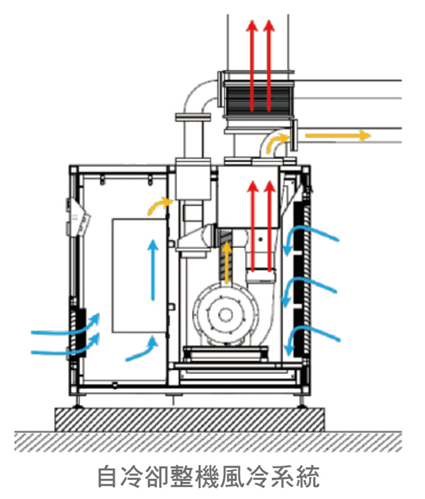 ● 電機同軸風冷,無需外部冷卻風扇,簡單可靠。