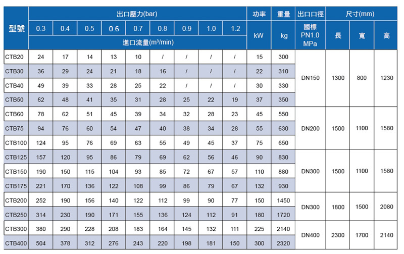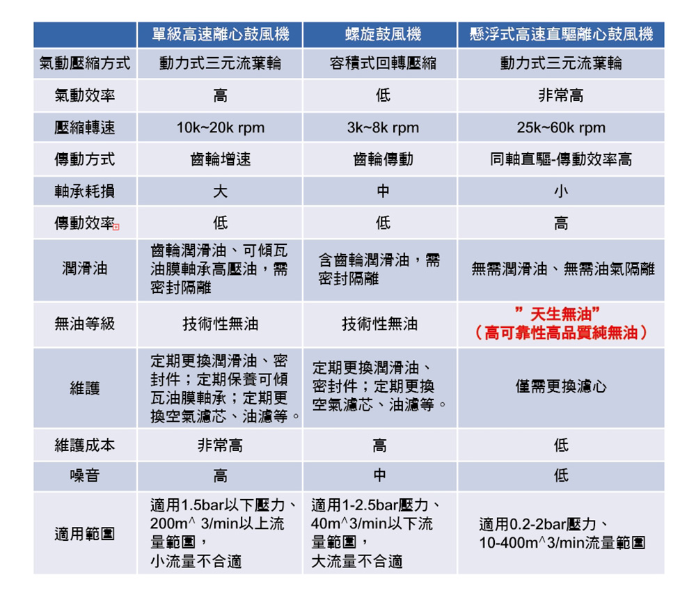 空氣懸浮離心鼓風機規格型號表